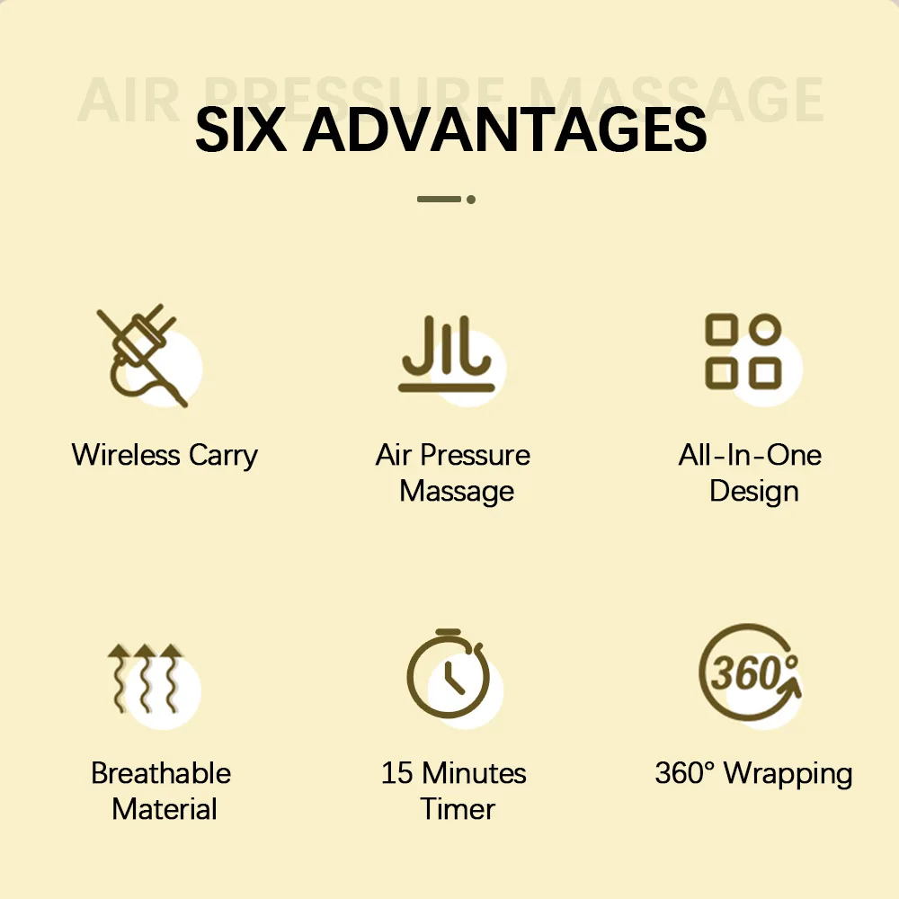 2.Progressive air pressure massage design, double long column airbags, 360° no dead angle around the calf, massage and relax the calf muscles.